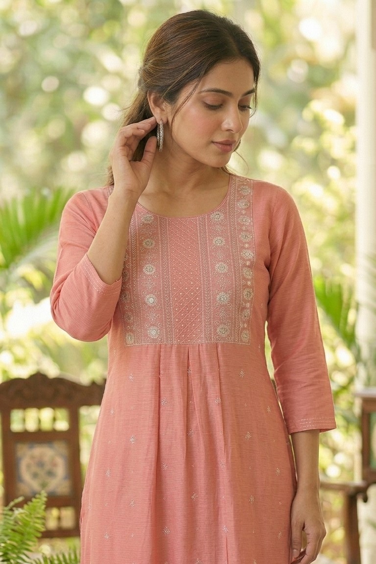 Peech Rayon Embroidered Kurti