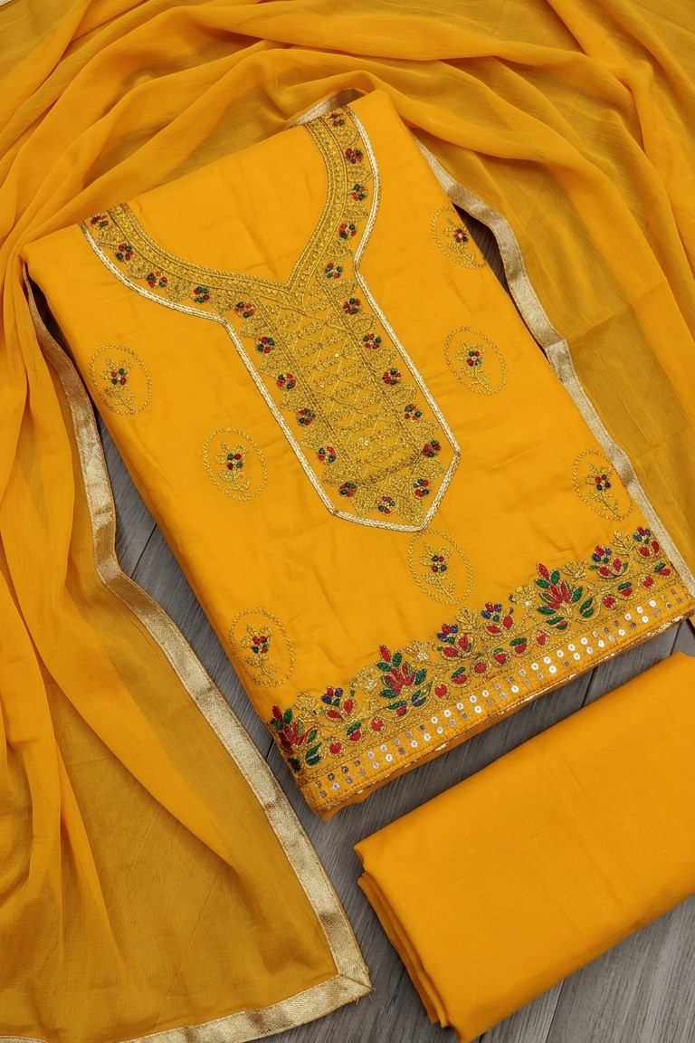 1 review for Yellow Cotton Suit Salwar Dress Material